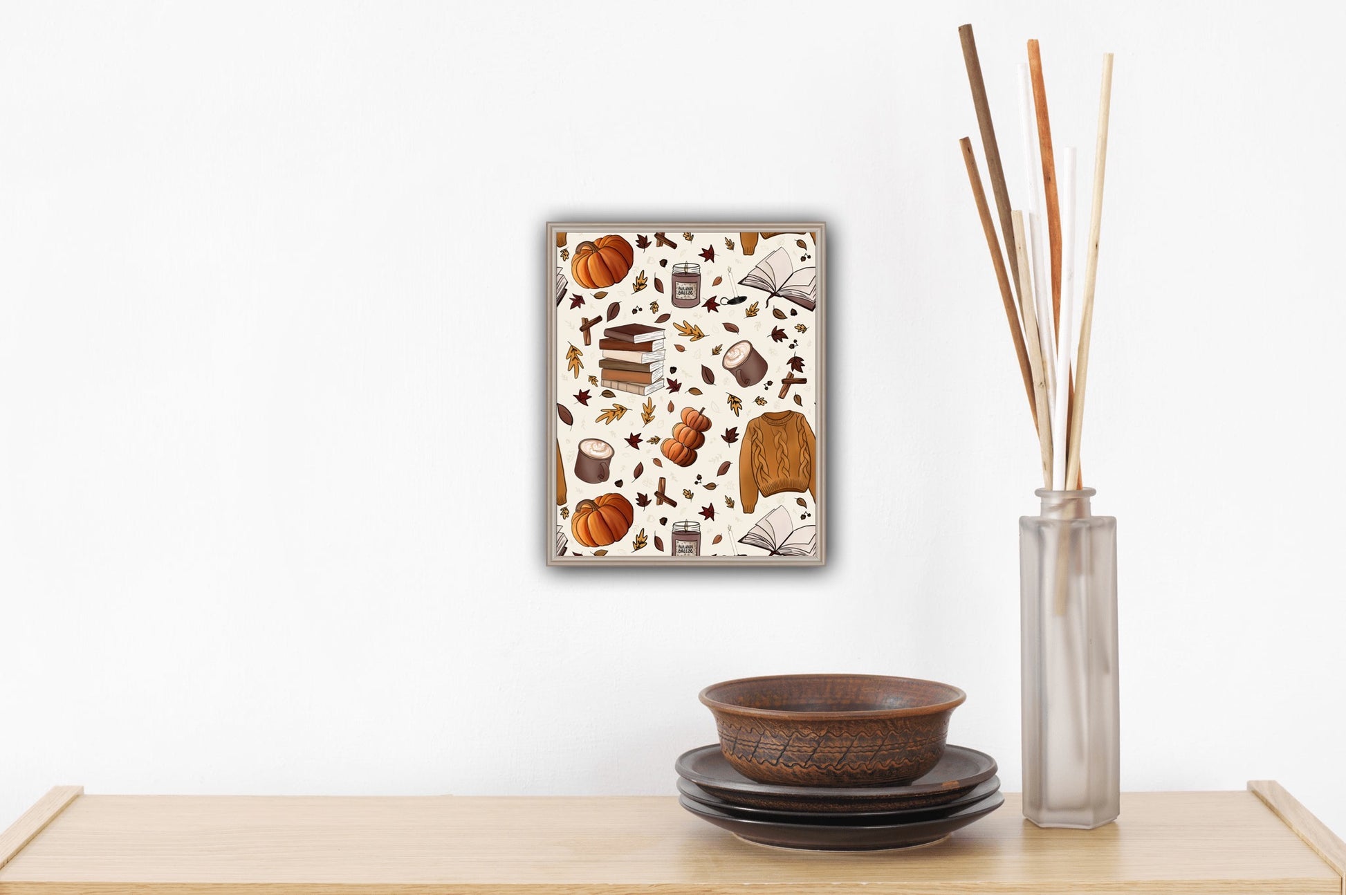 Add the cozy feel of Autumn to your home with this fun print filled with all of you Fall favorites!